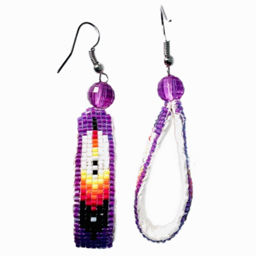 Beaded Earrings Shield with Feather Design (BER-F01)