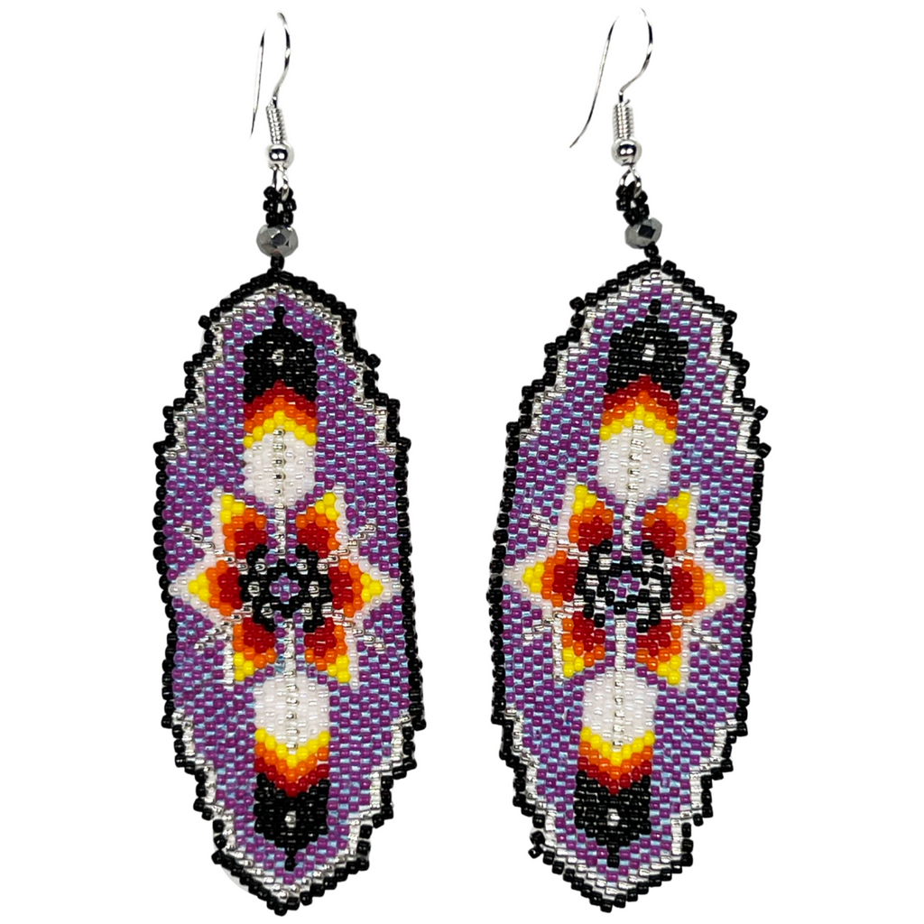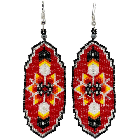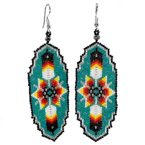 Beaded Earrings Shield with Feather Design (BER-F01)
