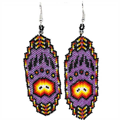 Beaded Earrings Shield with Feather Design (BER-F01)