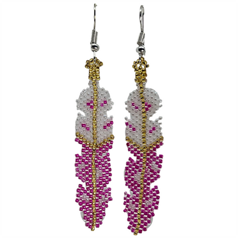 Beaded Brick Stitch Feather Gold Trim Earrings (BSC-FE3E)