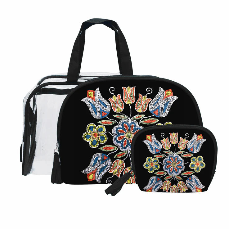 Sets consist of 3 bags, Large, Small and Transparent Bag. They are compact, portable and easy to pack and carry. 100 % Polyester. Measurements are as below: