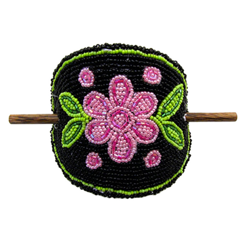 Beaded Stick Barrette - Cree Inspired Floral (BBW-018)