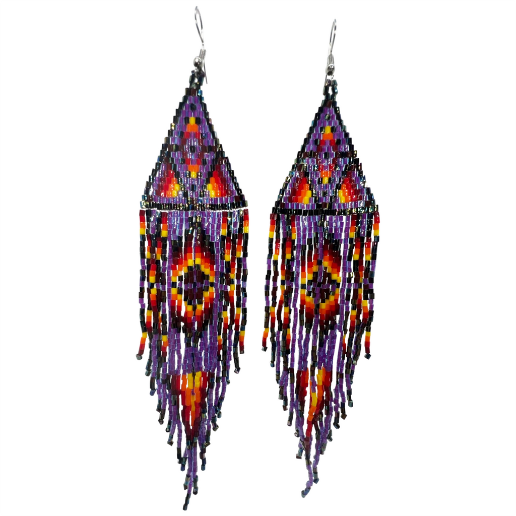 Beaded Earrings Shield with Feather Design (BER-F01)