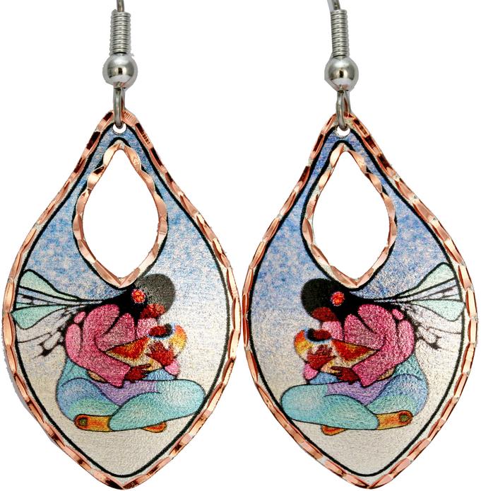 Beaded Earrings Shield with Feather Design (BER-F01)