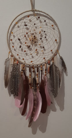 One of the most beautiful stories in American Indian Mythology. It is said that both good dreams and bad dreams circulate in the night air. The loop, its centre woven in a web-like pattern, allows the good dreams to pass through the web into the sleeper, but makes the bad dreams become entangled in the web, where they perish at the first light of dawn.