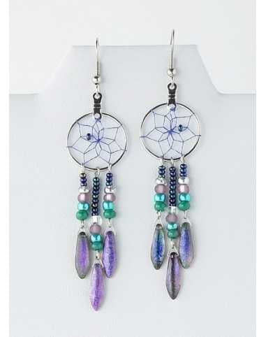 Beaded Earrings Shield with Feather Design (BER-F01)