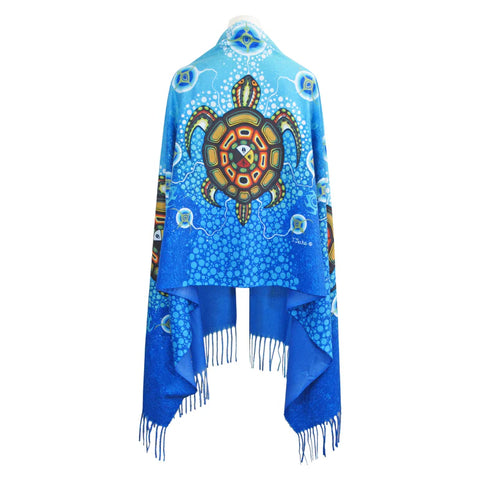 The Turtle is sacred in the indigenous culture. It carries the four colours of the medicine wheel, symbolizing important elements and can be different depending on the tribe. The seven circles represent the seven teachings of our people, and inside each circle is a bird that delivers the message of the creator.