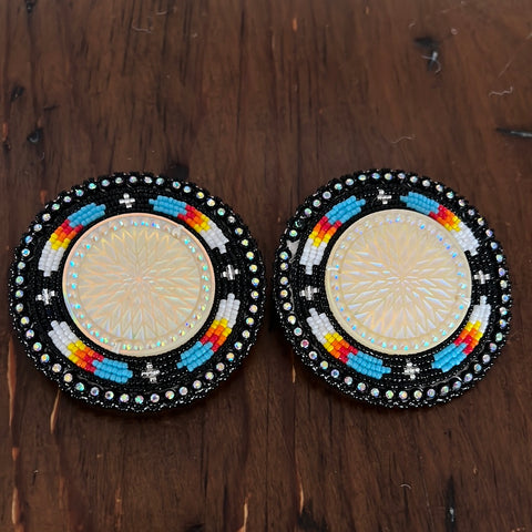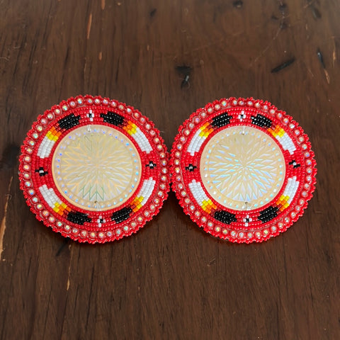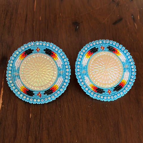 Beaded Earrings Shield with Feather Design (BER-F01)