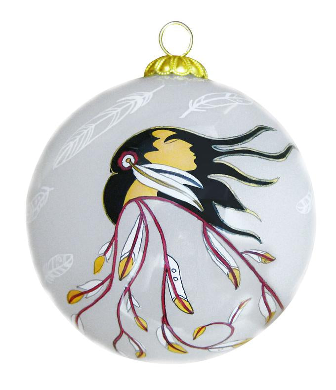 Glass ornaments are 75mm in diameter and are individually packaged in an elegant padded satin box. Information about the artist are featured on a bio card.