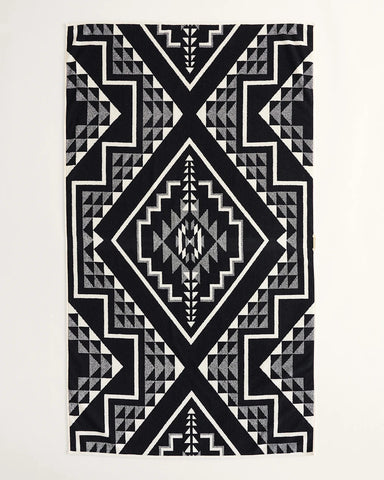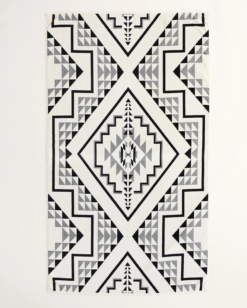 Dynamic Oxbow pattern re-created in a supersized towel for beach, pool or hot tub—or an instantly luxurious bathroom. Thirsty cotton velour is sheared on one side for luxurious softness, looped on the other for superior absorption.