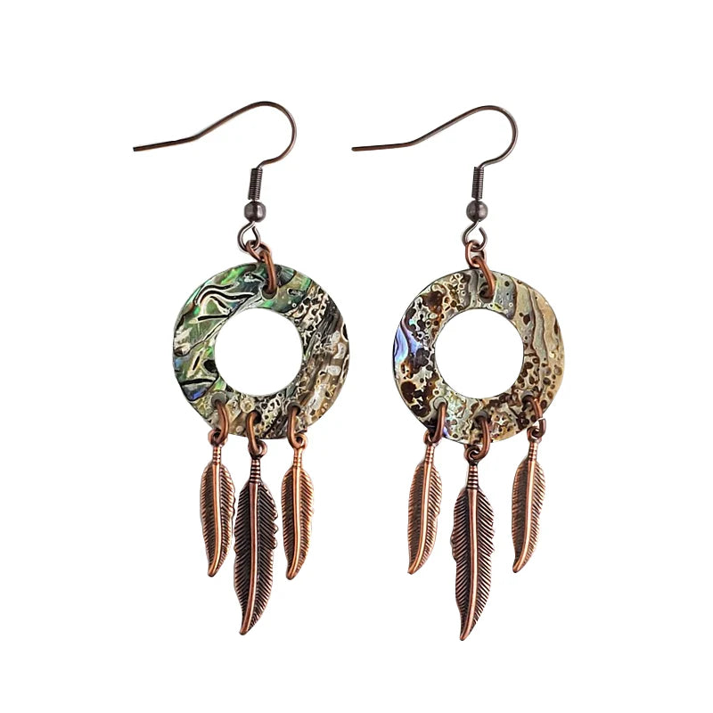Beaded Earrings Shield with Feather Design (BER-F01)
