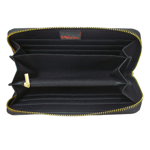 Wallets are 12.5cm x 21cm; it is zipper-closed, with 8 card slots, 5 compartments and 1 zipped pocket inside. They come with a hardcover gift box stamped with the artist's signature and the name of the art.